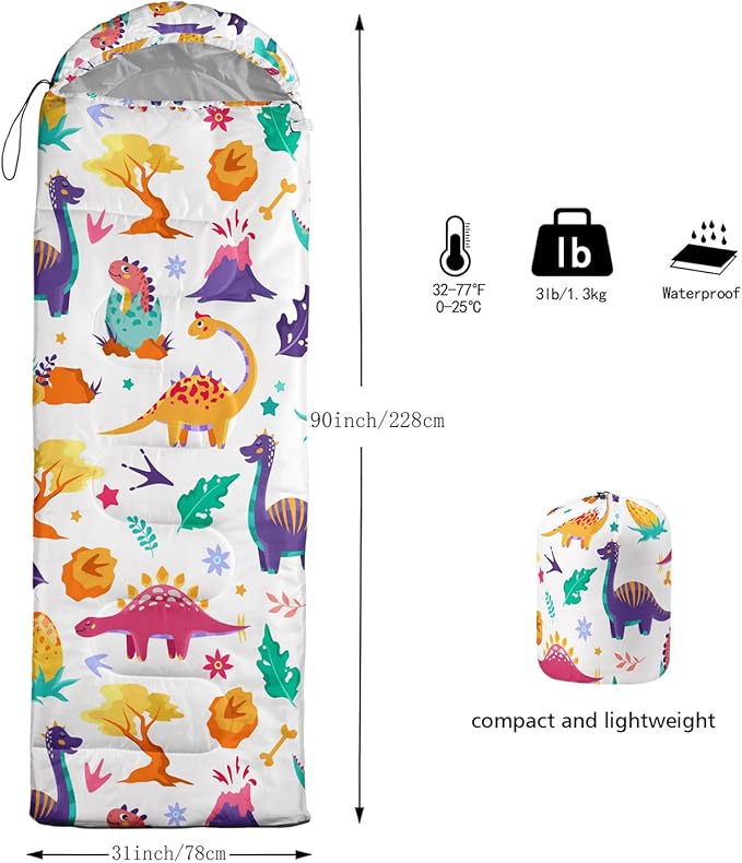 - Special Feature : Dinosaur design, foot zipper for temperature control, vacuum compressible