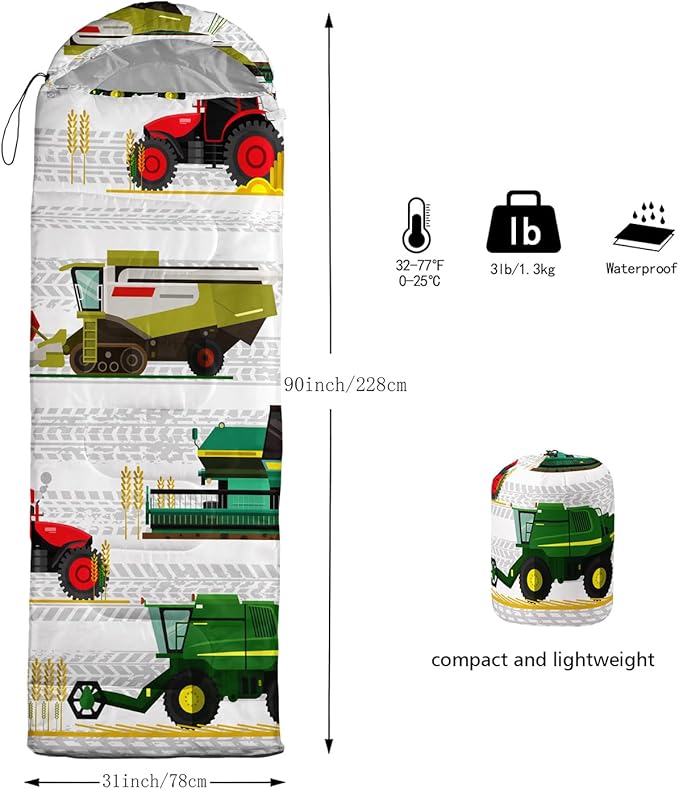 - 🌈【Fashion Design】SIZE - 31 by 90 inches (W x D). Our sleeping bag can be used in 3 seasons with a design temperature of 32℉-77℉(0℃-25℃). These bags also have a weather resistant waterproof design to keep you warm and prevent you from any dampness.