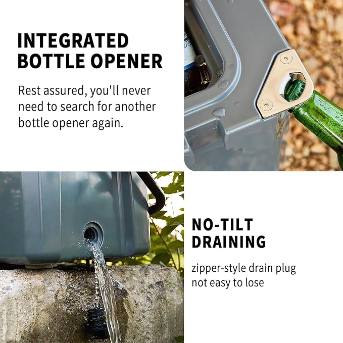 - QUALITY MATERIALS: Crafted with seamless LLDPE using rotomolding technology, our coolers feature UV-resistant exteriors and food-safe interiors. The impact-resistant, one-piece design withstands extreme outdoor abuse while maintaining structural integrity - no cracks, leaks, or warping under 310+ lbs weight capacity.