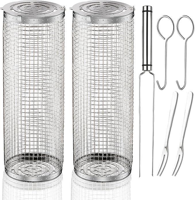 - 【Rolling Grilling Basket】:When you first use the Rolling Grilling Basket for your vegetables and meats, you will be amazed at the ease with which it allows your ingredients to cook evenly, rotates 360 degrees to ensure that food is evenly heated, making it easy to grill foods that you were afraid to try before.