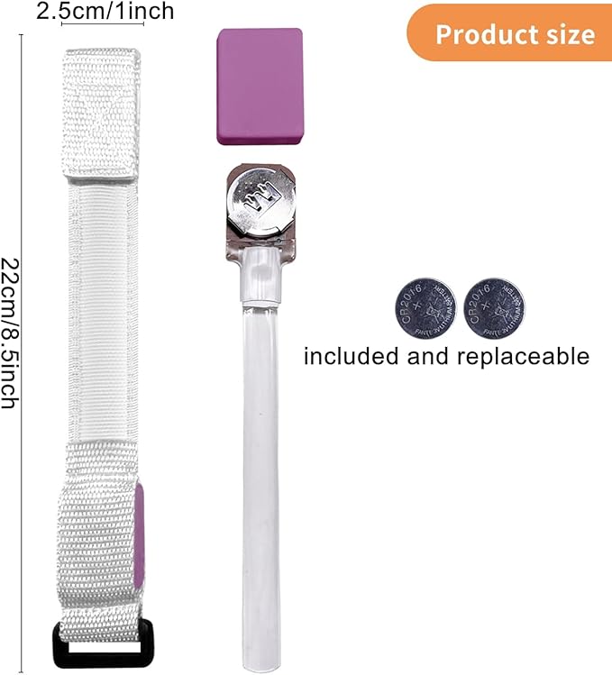 - It is powered by 2 CR2032 batteries, which are included and pre-installed. The batteries are replaceable, and the nylon wristband can be cleaned by removing the battery pack, making it reusable.