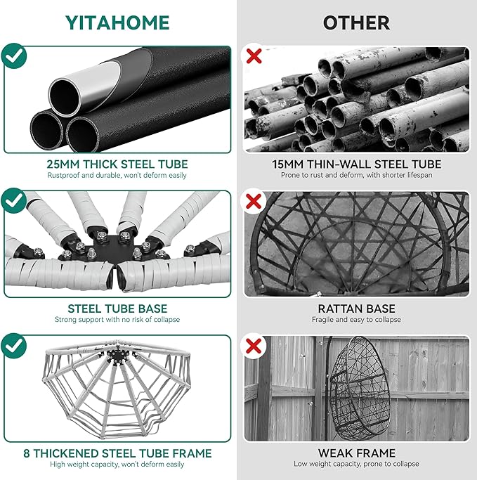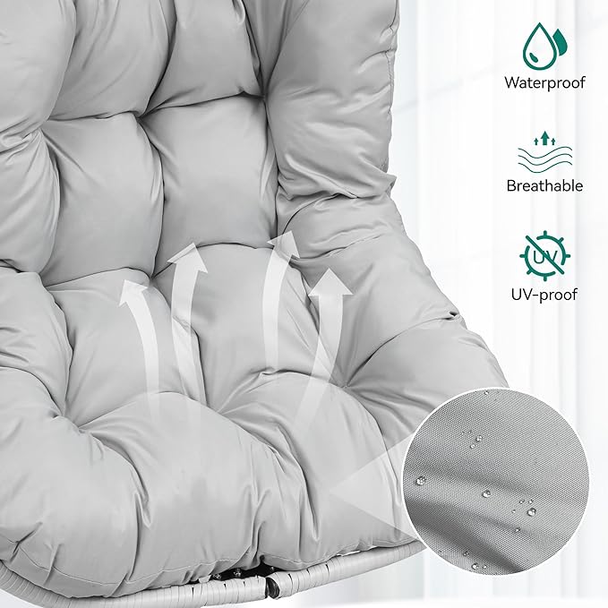 - COMFORTABLE EGG CHAIR: Our hammock chair used a combination of solid steel frame and rattan to increase strength, have weatherproof and durability, and are equipped with comfortable and soft PP cotton cushion, so that you can enjoy while ensuring your safety