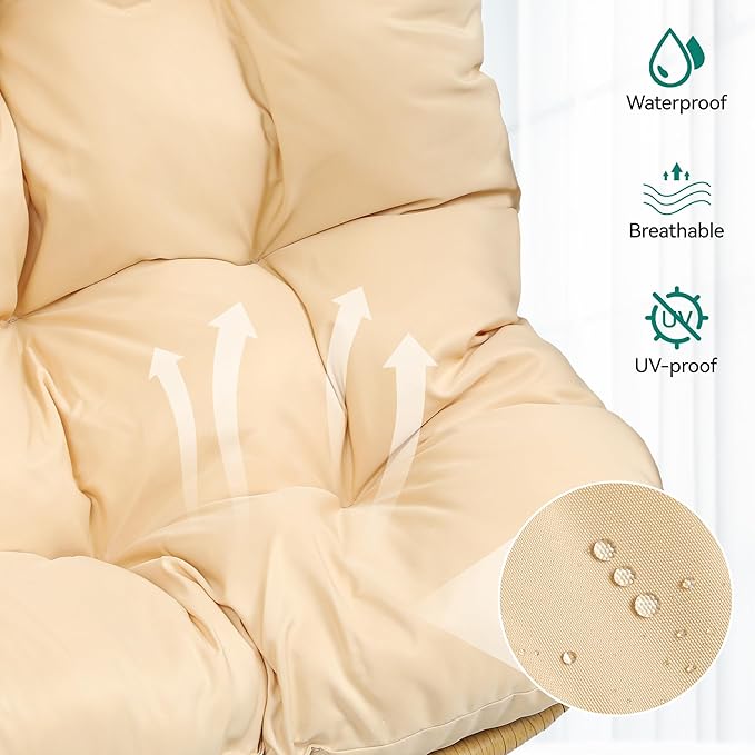 YITAHOME Egg Chair Swing Hanging Outdoor Wicker Hammock Chairs Indoor with Steel Stand Padded Cushion 330lbs for Patio, Bedroom, Garden and Balcony - Beige