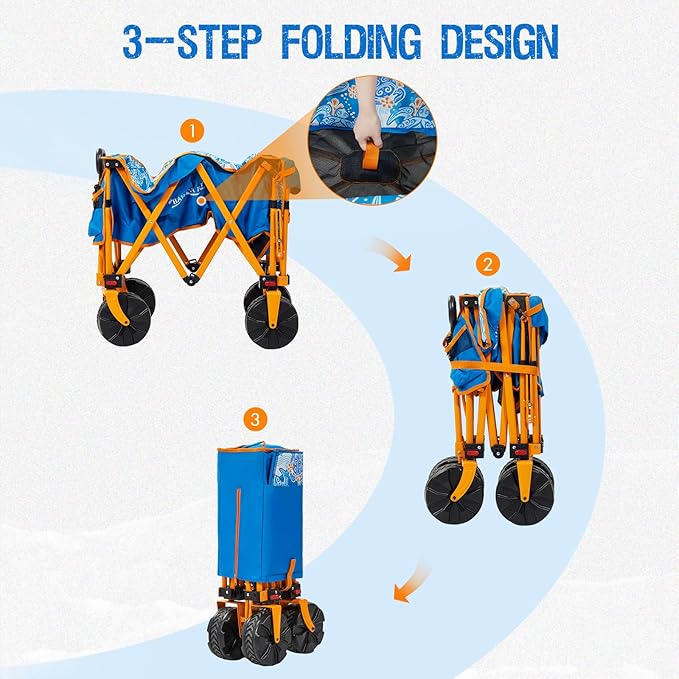 - 【Effortless Movement】:Designed with 360° swivel wheels for smooth movement,wide and well-constructed wheels that allow you to carry coolers, tents and chairs on the beach without getting stuck in the sand.