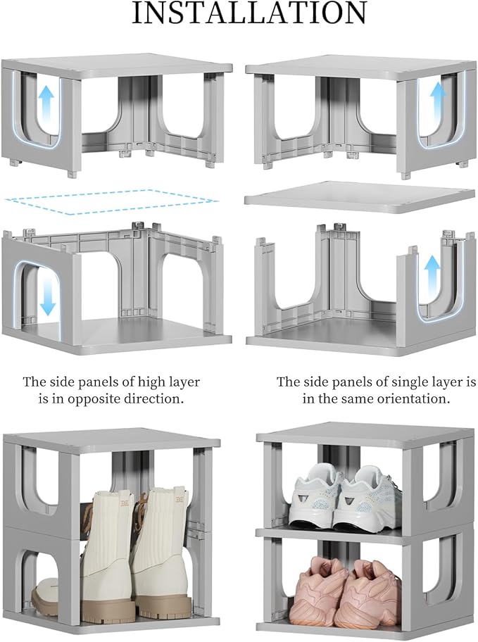 - Easy to Assemble: The simple modular structure of shoe organizer is easy to install. No tools are required for assembly. Easy to clean with shoe storage cabinets' smooth PP surface. Directly flush and wipe it without disassembly