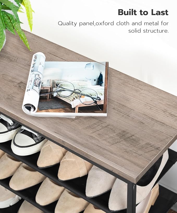 - Material and Structure: This shoe rack is made of durable waterproof oxford cloth, particleboard and thickened iron pipe, featuring easier clean. The top wooden shelf can be used to place albums, plants, handbags and other items, beautiful and practical