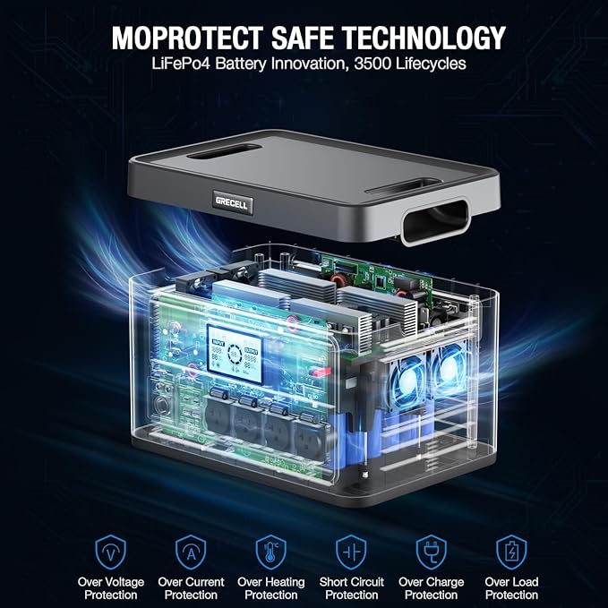 - HUGE CAPACITY POWER BEAST - Our portable power station is equipped with a 1843.2Wh/576000mAh LiFePO4 battery, 2400W gigantic capacity, compatible with more than 99% of electric devices, even heavy load devices, such as air conditioners, microwaves. GRECELL H2400 will serve as your backup power supply or power bank, power your home emergency and RV camping necessities well, and all you need to do is enjoy the good times.