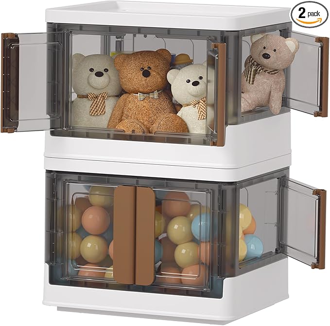 HAIXIN 4 Doors Opening Shelf Organizer, Foldable Closet Organizers and Storage, 6.86 Gal Cube Storage Bin with Wheels, Stackable Storage Box for Blanket Storage and Snack Organizers, 2 Pack