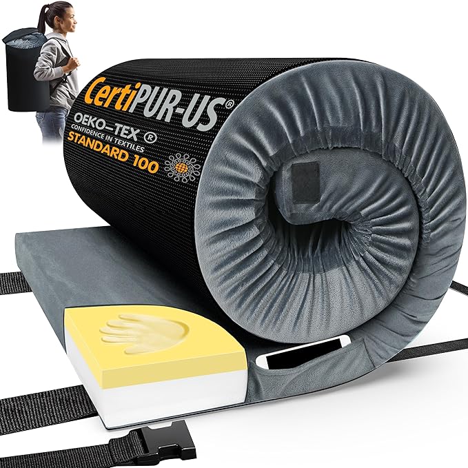 CYMULA CertiPUR-US Memory Foam Camping Mattress Pad, Portable Foam Sleeping Pad for Camping, Roll up Sleeping Mat for Adults Guest Floor Bed for Sleepover, Car, Tent SUV Cot Mattress