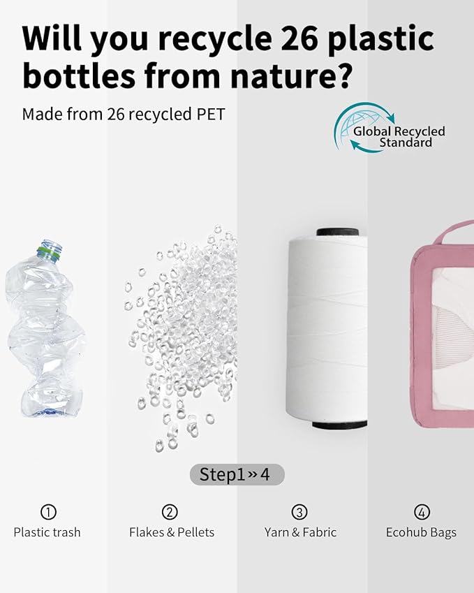 - 【SUSTAINABLE AND GUARANTEE】: ECOHUB travel packing cubes are made from at least 50% recycled materials, with fabric and lining crafted from 26 recycled PET plastic bottles. The lightweight fabric combined with YKK zippers and reinforced ripstop stitching, ensure durability for any adventure. If you have any concerns, reach out through your order. (Patent Pending)
