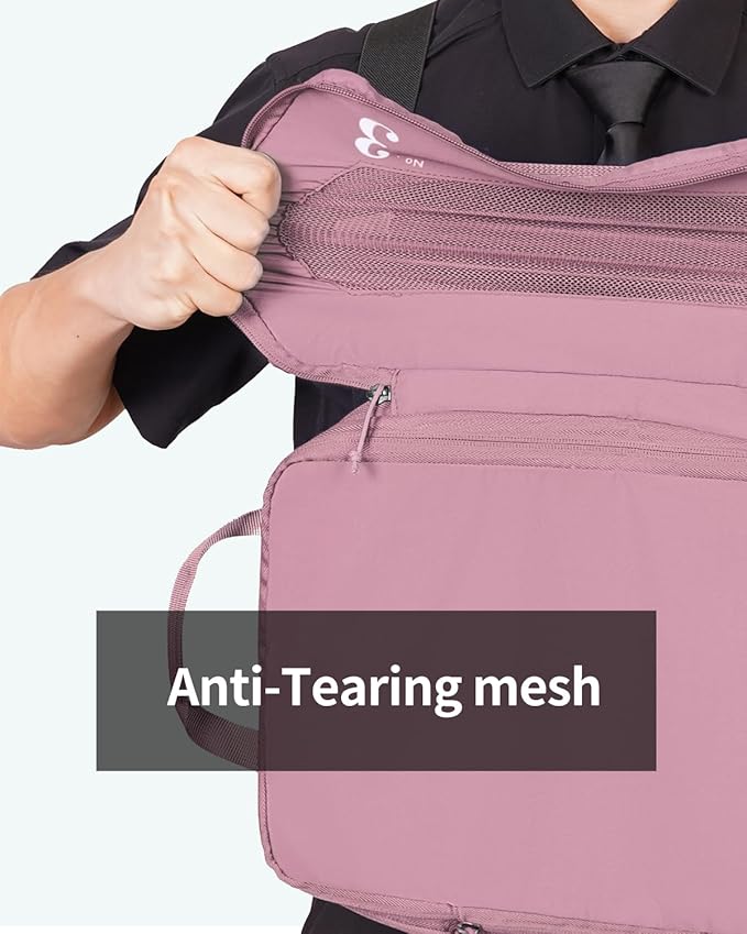 - 【Compression Design Save More Space】: ECOHUB compressible packing cubes come with an extra zippered section for content compression. Comprssion zippers allow 10cm expansion. Unzip the compressed part, then have room to expand and add more items later. Compression design saves you space inside your luggage by pressing the air out of mesh and zipping up. Adjust and maximize your packing space while keeping your items easily accessed.(PATENT PENDING)
