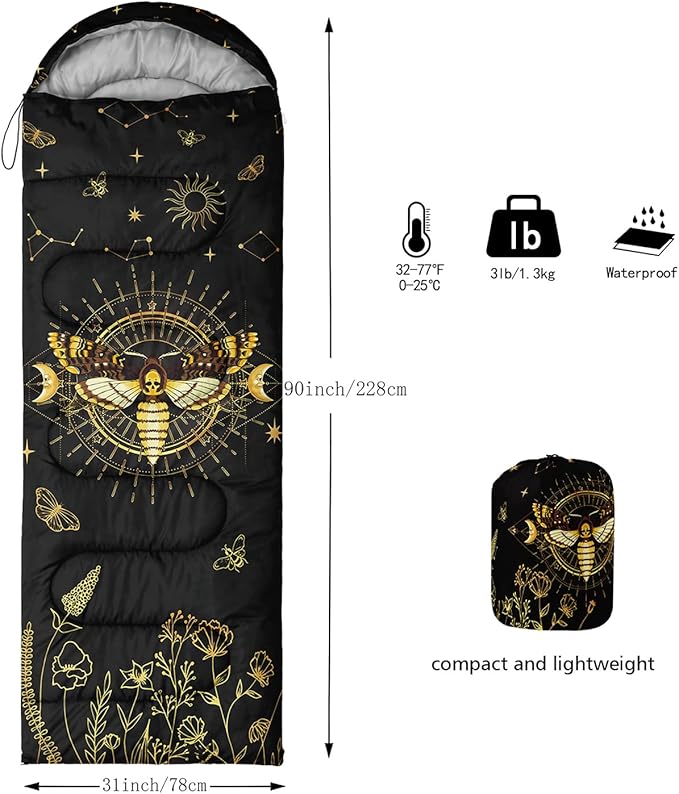 - 🌈【Fashion Design】SIZE - 31 by 90 inches (W x D). Our sleeping bag can be used in 3 seasons with a design temperature of 32℉-77℉(0℃-25℃). These bags also have a weather resistant waterproof design to keep you warm and prevent you from any dampness.