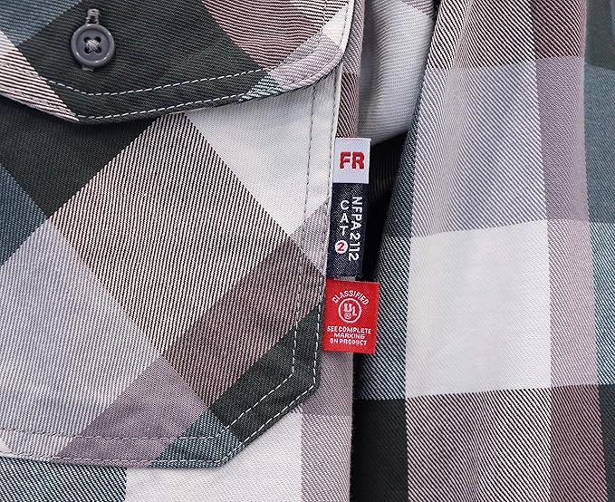 • FR MATRIALS LIGHT WEIGHT:6.25OZ Cotton Twill FR Treated,FR Buttons,FR Sewing Threads!Clear FR Tag on arms and bottom front.More FR info On Neck Tag About UL Certification.We Attached A Small Sample Inside Package For Cunstomers Simple FR Try