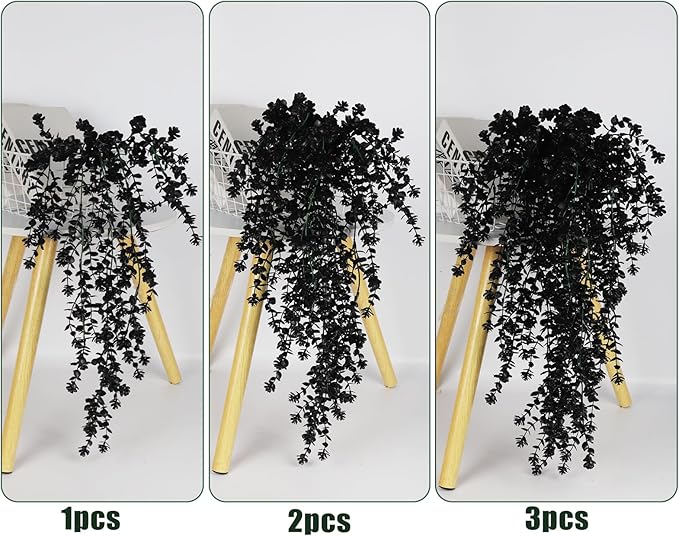 - 【Fake Hanging Plants Package】3 packs of black artificial hanging plants, and the total length of the artificially hanging plants is approx. 30 inch long,has 5 flexible stems, bushy leaves and a few small branches with many leaves, make it look very vivid and three-dimensional.