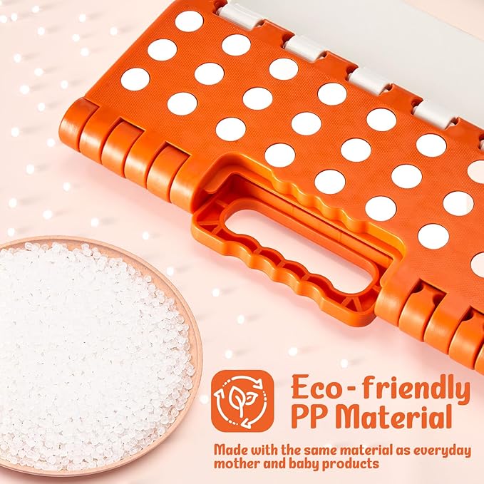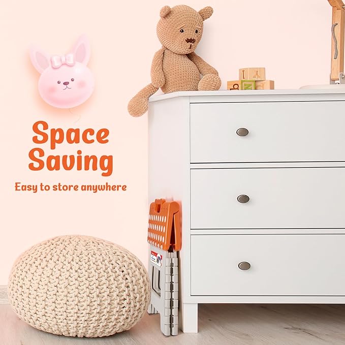 ACSTEP 9 Inch Folding Step Stool 300 LB Capacity Plastic Foldable Step Stools for Kids and Adults, Folding Stool Suitable for Kitchen, Stepping Stool with Handle Bicolor Orange Small Step Stool 1PC