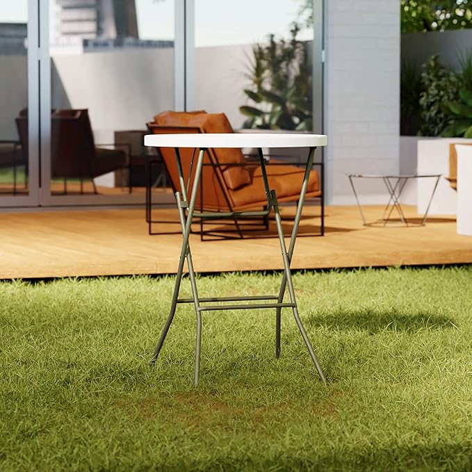 Commercial Round Bar Height Folding Table - Heavy-Duty White Plastic for Parties, Banquets, and Events - Perfect for Indoor/Outdoor Use (32 inches, 5 Units)