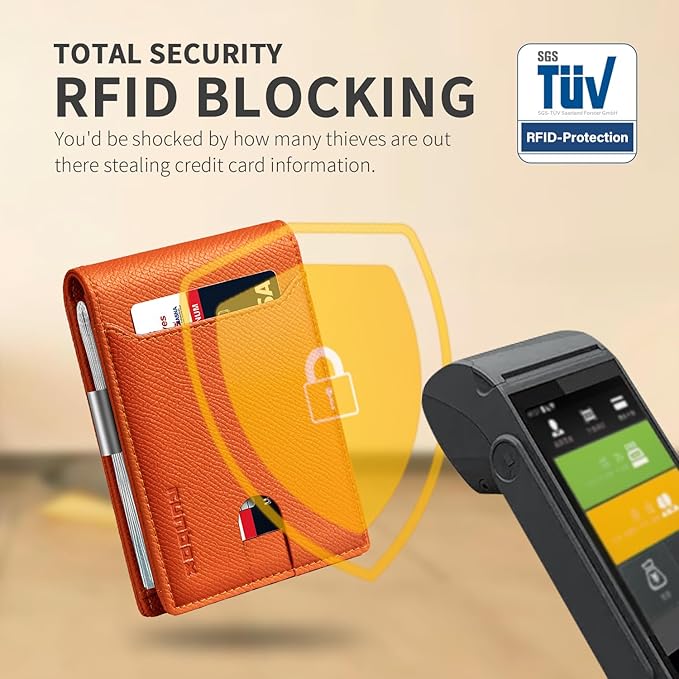 - šš šš šš§šš¢-šš”ššš šššššššš - this slim wallet for men equipped with German Instiute Certified RFID Security technology, a unique metal composite, engineered specifically to block 13.56 MHz or higher RFID signals to protect the valuable information and privacy