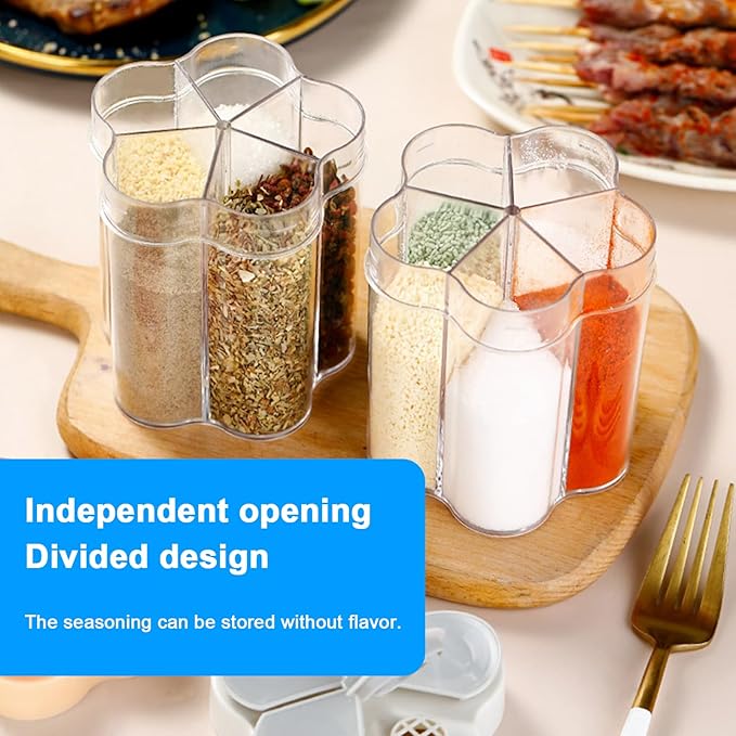 - [High-quality materials]:Reusable seasoning jar is made of PP+PS, which is small and portable, hygienic and can directly contact with food. It can hold salt, pepper, onion, garlic, sugar and hot sauce.