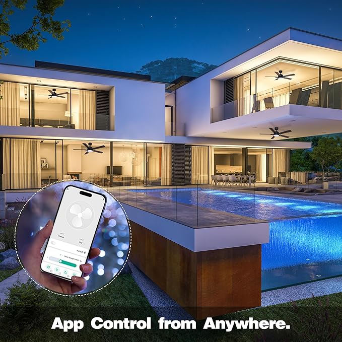 - 【Voice & APP & Remote Control】 Experience full control with the 52-inch Ceiling fan with lights. Stay in command even when your WiFi connection is down. Our Alexa-enabled ceiling fans with smart control are compatible with WiFi, Alexa, Google Assistant, and the App, allowing you to effortlessly control your fan with a simple voice command such as "Alexa, turn on the fan in the bedroom or on the patio".