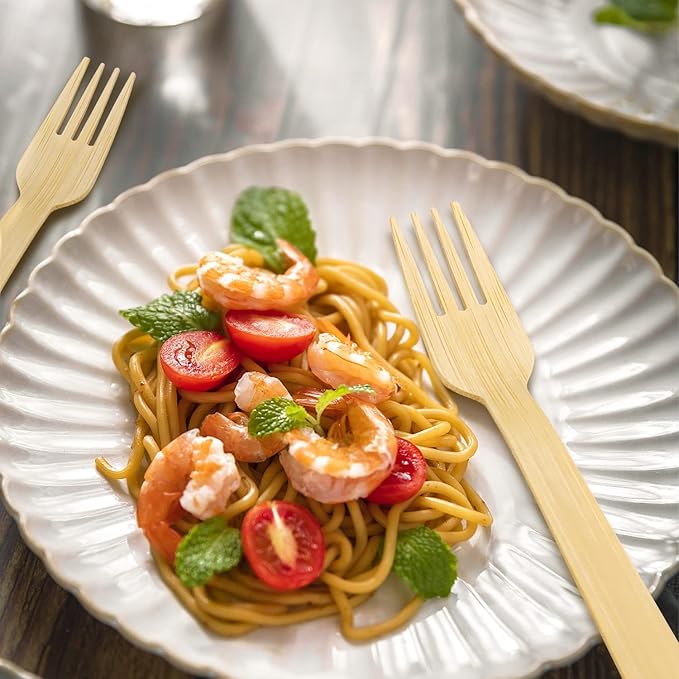 - ♻【What Is Included】The heavy-duty cutlery includes 2200 bamboo forks, containing no harmful chemicals, splinter free, sturdy. You can use it for dessert, fruit, salad, spaghetti, etc. with peace of mind. Use the dinnerware set to enjoy various cuisines.