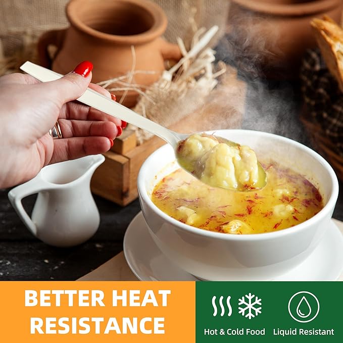 100% Compostable Disposable Spoons, 6.7" 150pcs Heavy Duty Utensils Eco-Friendly Cornstarch Cutlery Durable and BPI-Certified Party Supplies No Plastic, Ivory White