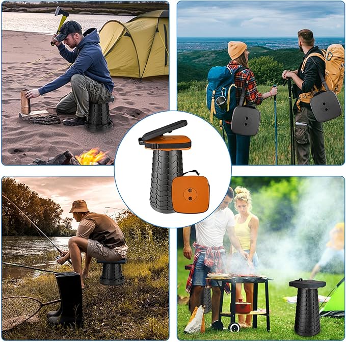- 【PORTABLE & LIGHTWEIGHT】- The retractable stool comes with a nylon bag and strap, which can help you carry it convenient and easy. When you want to go out, it won't take up much space in your vehicle or carry by hand or shoulder.