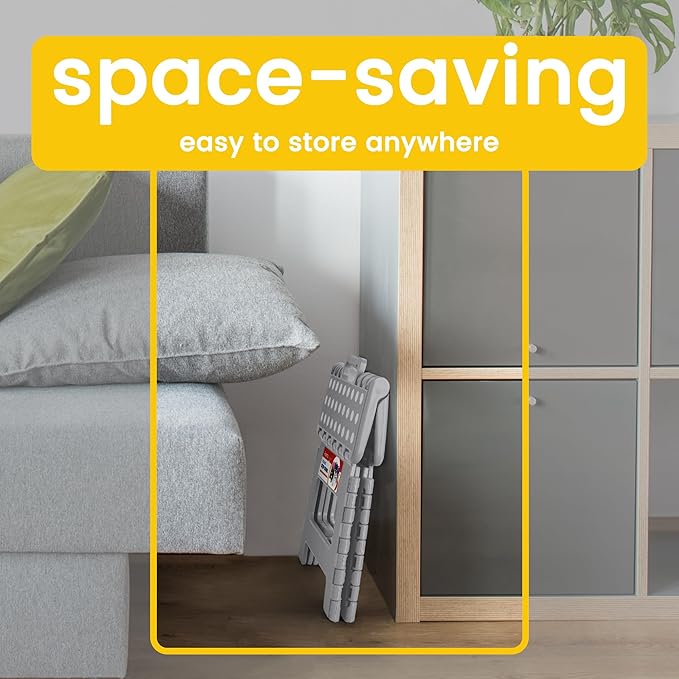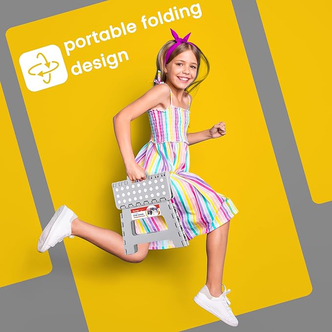 - Space Saving & Portable: Folded to only 1.7" wide, easy to store in corners of bathrooms, kitchens, bedrooms, etc. to keep your home organized. The foldable step stool opens and closes easily with just one hand, and can bring it with you for going out.