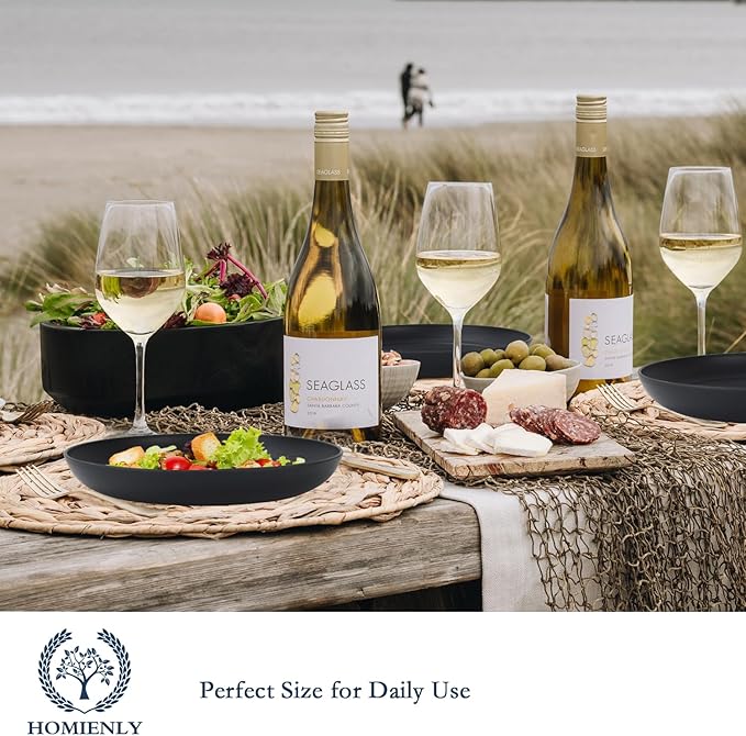 - VERSATILE & REUSABLE: Homienly wheat straw plates are versatile and lightweight, perfect for every meal, whether you're serving pasta, sandwiches, bread and butter, desserts, appetizers, or salads. Whether you're indoors or outdoors, our plates will impress you with their exceptional quality.Our black dinner plates come in Elegant matte Black colors. Each color will give you a lot of fun while you use these plastic plates, and your family will love them too
