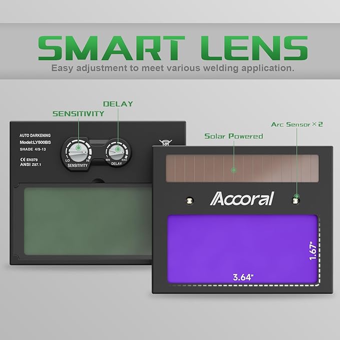 - Ultra-Fast Auto-Darkening: Equipped with 2 ARC sensors, our helmet detects changes in light and swiftly converts the lens from light to dark within an impressive 1/25000 of a second. This fast-darkening feature ensures maximum eye protection, allowing you to focus on your work without worrying about safety.