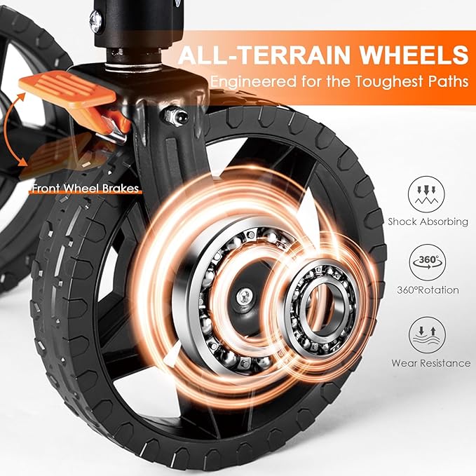 - Premium All-Terrain Wheels: Imagine rolling on clouds; that's what our high-quality PVC wheels feel like. Rainforests, sandy beaches, or that rocky path to your in-laws', this wagon's got your back. And with those fancy pedal-style brakes, it won't ghost you on slopes.