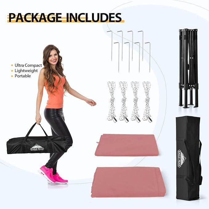 - EASY TO SETUP AND PUT AWAY: The EAGLE PEAK pop up system is more flexible and makes setup easy. The frame glides when opening and closing, enabling one person to easily open and close the canopy .