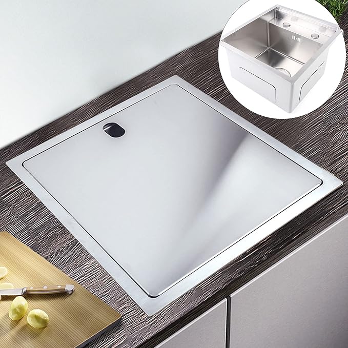 - 【Use】A set of equipment for sink faucet. Equipped with stainless steel folding lid and cold hot folding faucet. Drop in sink drainer is designed to sit flush in bar, kitchen, rv countertops where space is limited. Hand sink stainless steel sink commercial kitchen sinks, small stainless prep sink, rv camper sink.