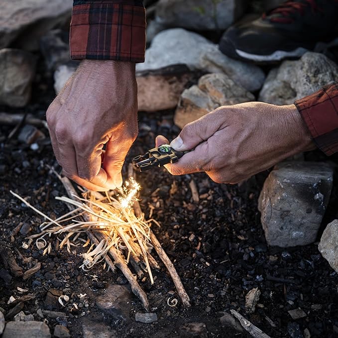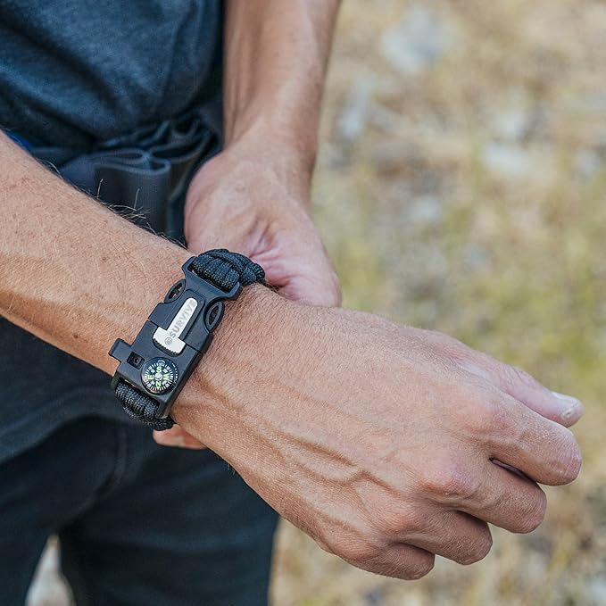 - MULTIFUNCTIONAL: Military grade paracord can be used for shelter, secure your items on your bag, or to set traps. Fire Starter to light a fire for cooking and warmth. Compass for navigation & orienteering. Whistle used to be heard from far distance, helps to be found easier by rescuers.