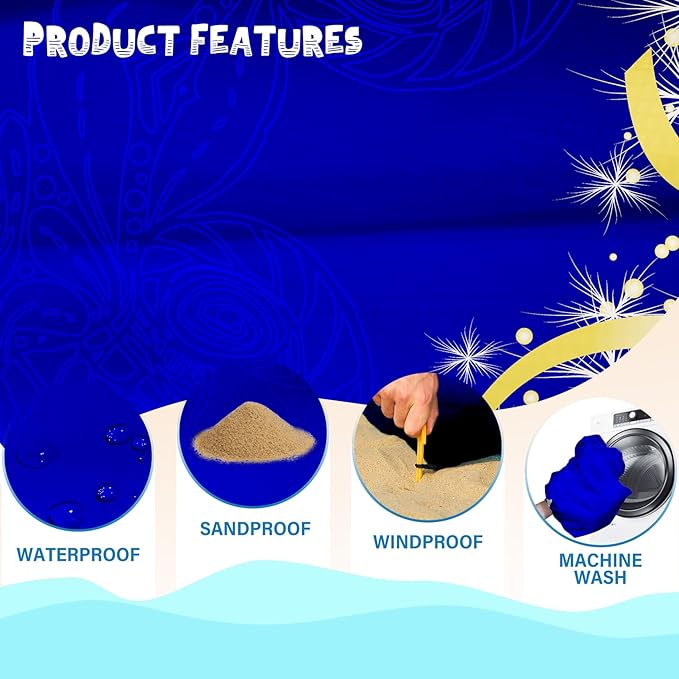 - 🌊BIG BEACH BLANKET:Durable and fast drying,can also be used as a canopy,sunshade,tent,toddler crawling mat,picnic mat,first aid mat,better professional fabric sewing without irritating the skin,providing you a good sense of use.