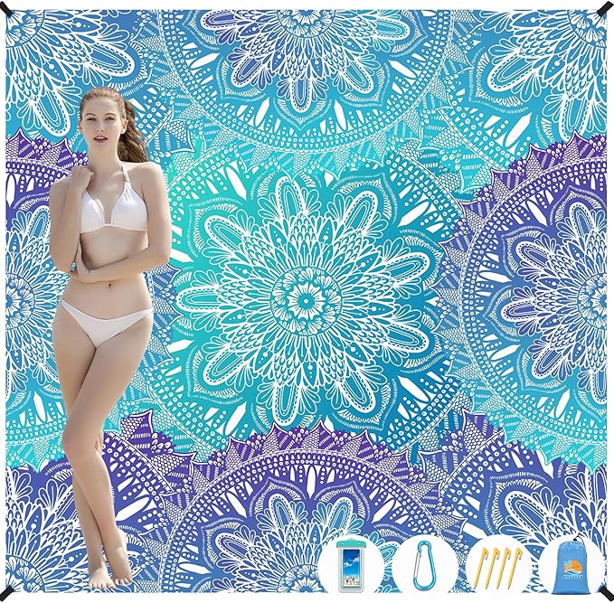 - 🌊BIG BEACH BLANKET:Durable and fast drying,can also be used as a canopy,sunshade,tent,toddler crawling mat,picnic mat,first aid mat,better professional fabric sewing without irritating the skin,providing you a good sense of use.