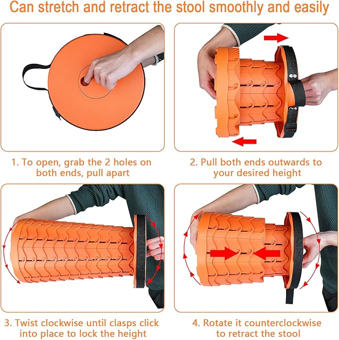 - PORTABLE & LIGHTWEIGHT: This telescopic stool is only 2.54 pounds with dimeter 9.84 inches/250mm. The adjustable strap makes the stool easy to carry in your hand or hanging on your shoulder. Perfect to use for camping, fishing, hiking, hunting, picnic, BBQ. Also can be used in living room, bedroom, bathroom etc