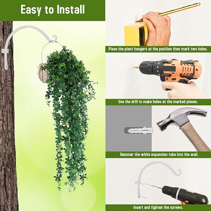 FEED GARDEN 2 Pack 12 Inch Hanging Plant Bracket Wall Hooks Decorative Plant Hangers for Outdoor Hanging Bird Feeders, Wind Chimes, Plant Baskets, White