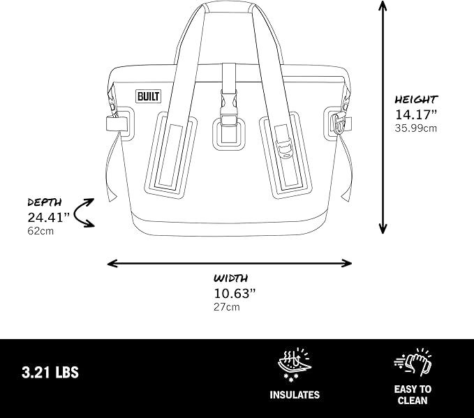BUILT Large Welded Soft Portable Cooler Bag with Wide Mouth Opening, Insulated and Leak Proof Design, Durable and Lightweight for Outdoor Use, Atlantic Stripe Pattern