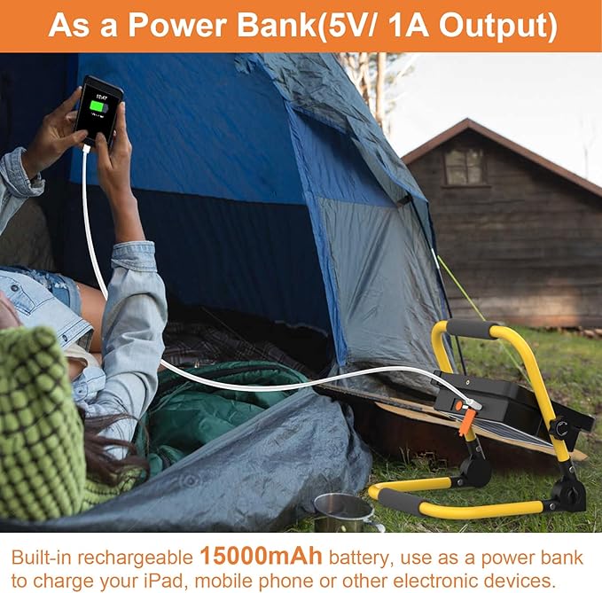 ERAY Rechargeable Work Light with Remote Control and Stand,15000mAh Battery 10000LM Worklight, Portable Solar Camping Lights, IP66 4 Lighting Modes Work Lights for Outdoor Emergency Car Repairing