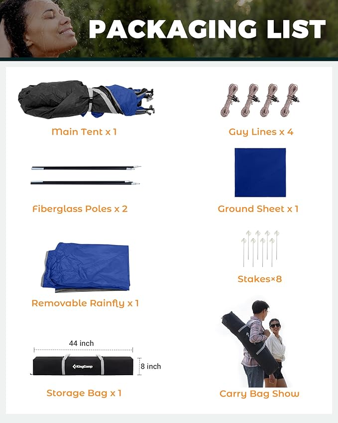 - QUICK SETUP & STORAGE: No tools required! Simply unfold the tent, extend the poles, and listen for the "click" sound to complete the setup. The entire process takes just 60 seconds, offering a hassle-free and quick shower tent experience. Comes with a storage bag for easy transport, with packed dimensions of 44" x 8" x 8".