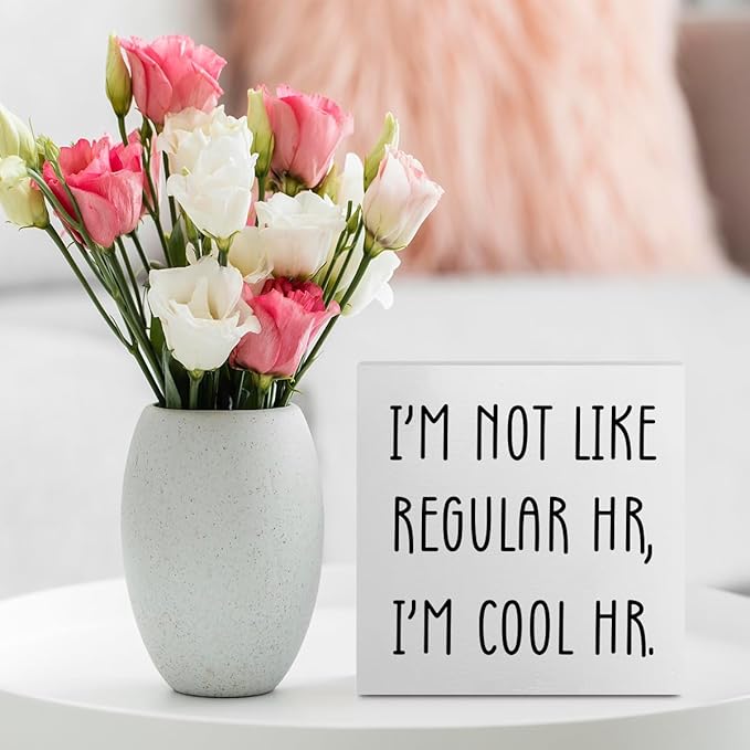 Funny Human Resources Office Supplies Rustic Desk Decor White Wooden Box Sign Office Organization Humor Manager Coworker HR Gifts Farmhouse Wood Plaque Cubicle Accessories Home Shelf Table Decorations