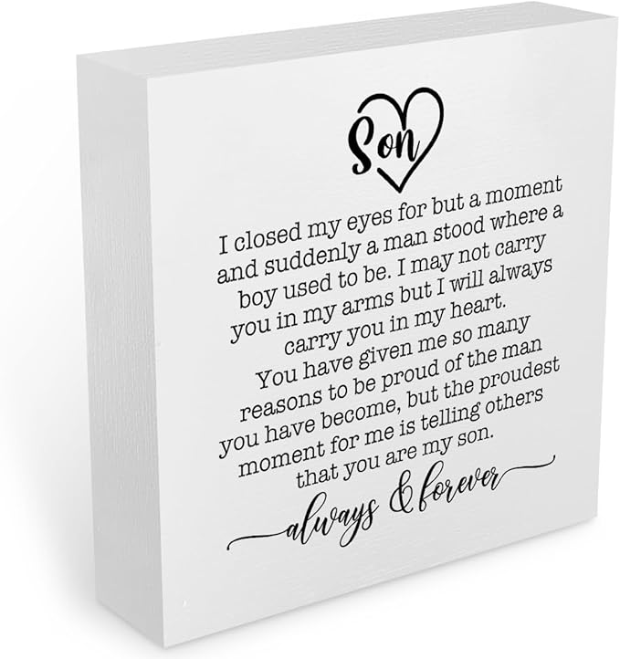 Inspirational Son Gifts from Mom Office Supplies Rustic Desk Decor Motivational Son Birthday Gifts White Wooden Box Sign Farmhouse Wood Plaque Cubicle Accessories Home Shelf Table Counter Decorations
