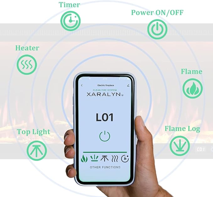 - Smart Home: Benrocks smart electric fireplace is a new-fashioned intelligence household appliance that can be easily controlled by remote control, touch screen or APP. Download “Xaralyn Smart” on your phone, press the “Flame Setting” button and follow the instructions displayed in the app