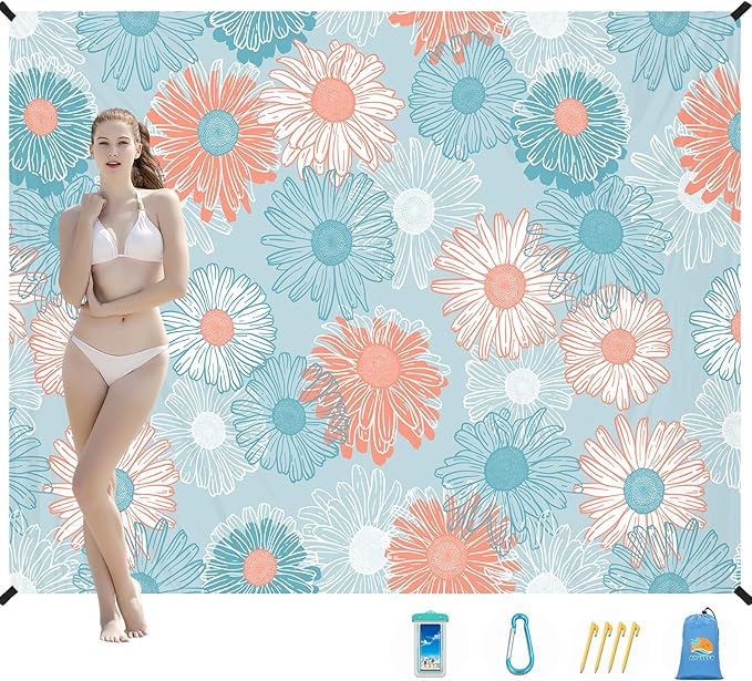 - 🌊BIG BEACH BLANKET:Durable and fast drying,can also be used as a canopy,sunshade,tent,toddler crawling mat,picnic mat,first aid mat,better professional fabric sewing without irritating the skin,providing you a good sense of use.