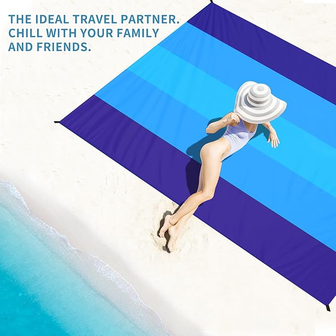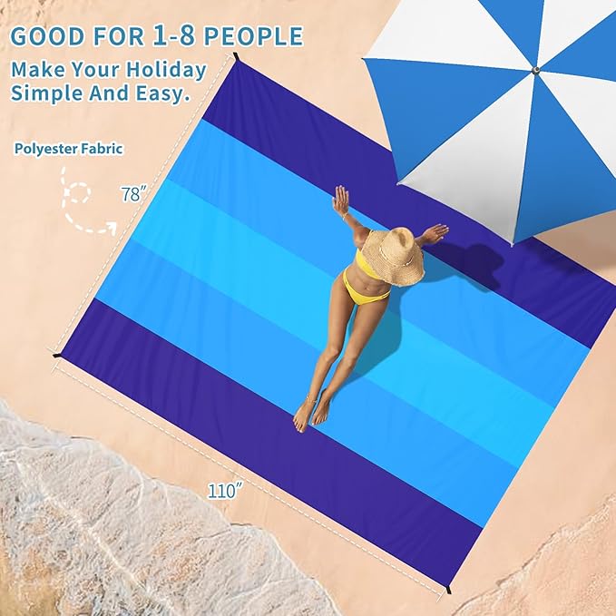 - ⛱ Beach Blanket Oversized:Tear-resistance,dry quick.Also can be used as a rainshed,sunshade,tent,toddler crawl,emergency mat etc.Feel comfortable to lying down.Won't irritate your skin and fine stitches.