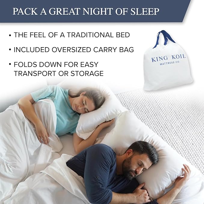 - Premium, Durable & Portable Design: Crafted from waterproof, puncture-resistant materials, King Koil's twin air mattress boasts ultra-premium durability and a sleek, space-saving design that makes it perfect for home use and on-the-go adventures.