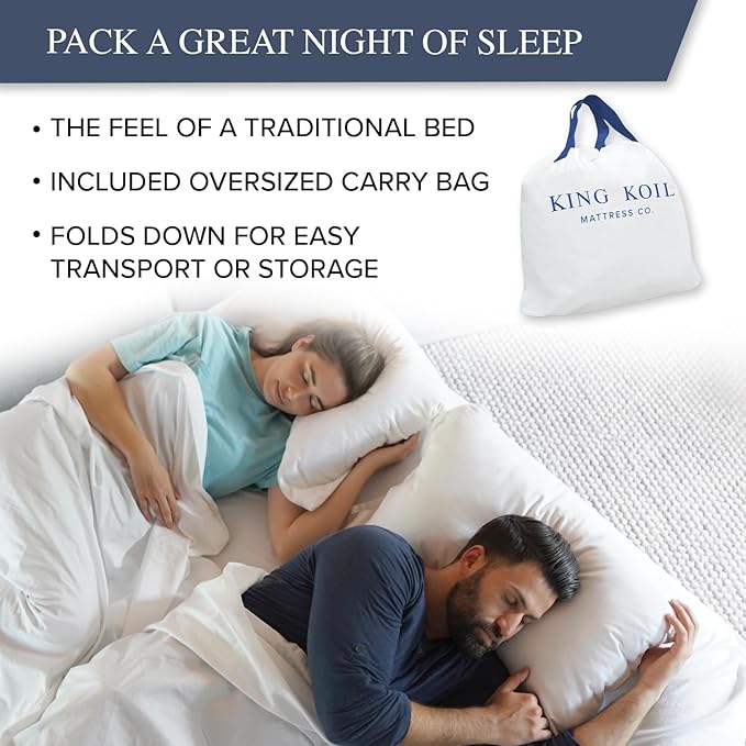 - Easy to use plug in internal pump allows fast & easy inflation / deflation. The King Koil mattress reaches full inflation in 2 minutes 30 seconds. The King Koil air mattress is designed for in-home use and is perfect for overnight guests, friends or relatives, and camping trips. Remember, although it holds air extremely well, you can always click the pump on for a few seconds to inflate or deflate to your desired comfort level!