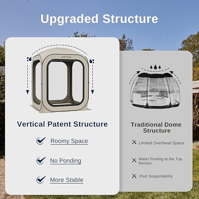 - ššš“-š£šæš¼š¼š³ & š©š²š»šš¶š¹š®šš²š±: The EAST OAK portable pop-up screen teent features a 4-sided B3 fine mesh design for 360° perfect ventilation to protect you from mosquitoes, bugs and anything the outdoors can throw at you. The tent body is made of high-quality Oxford fabric with anti-UV silver coating to achieve all-day UPF 50+ UV protection. Perfec for picnics, camping, and the beach