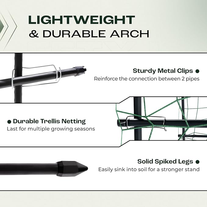 - VERSATILE USE: Many different plants and climbing vines, including flowers, vegetables, and even fruit bearing plants like grapes, can be supported by our garden arch trellis with plant-friendly netting