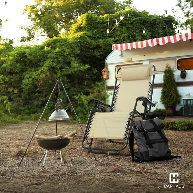 CAPHAUS Beige Zero Gravity Reclining Lounge Outdoor Chair, Zero Gravity Recliner, Anti-Gravity Chair for Indoor & Outdoor, Folding Reclining Chair w/Side Tray, Beige